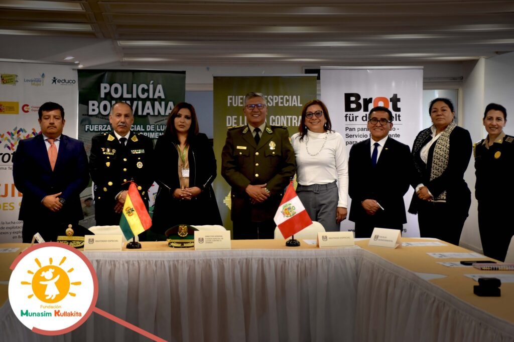 La Dirección General de la Fuerza Especial de Lucha Contra el Crimen (FELCC) – División Trata y Tráfico de Personas de La Paz, con el apoyo de la Fundación Munasim Kullakita, realizó una reunión junto al equipo multidisciplinario especializado en trata de personas del Perú, la Policía Boliviana y la FIAP, con el propósito de intercambiar experiencias, fortalecer la cooperación y compartir buenas prácticas en la prevención y atención de la trata de personas.